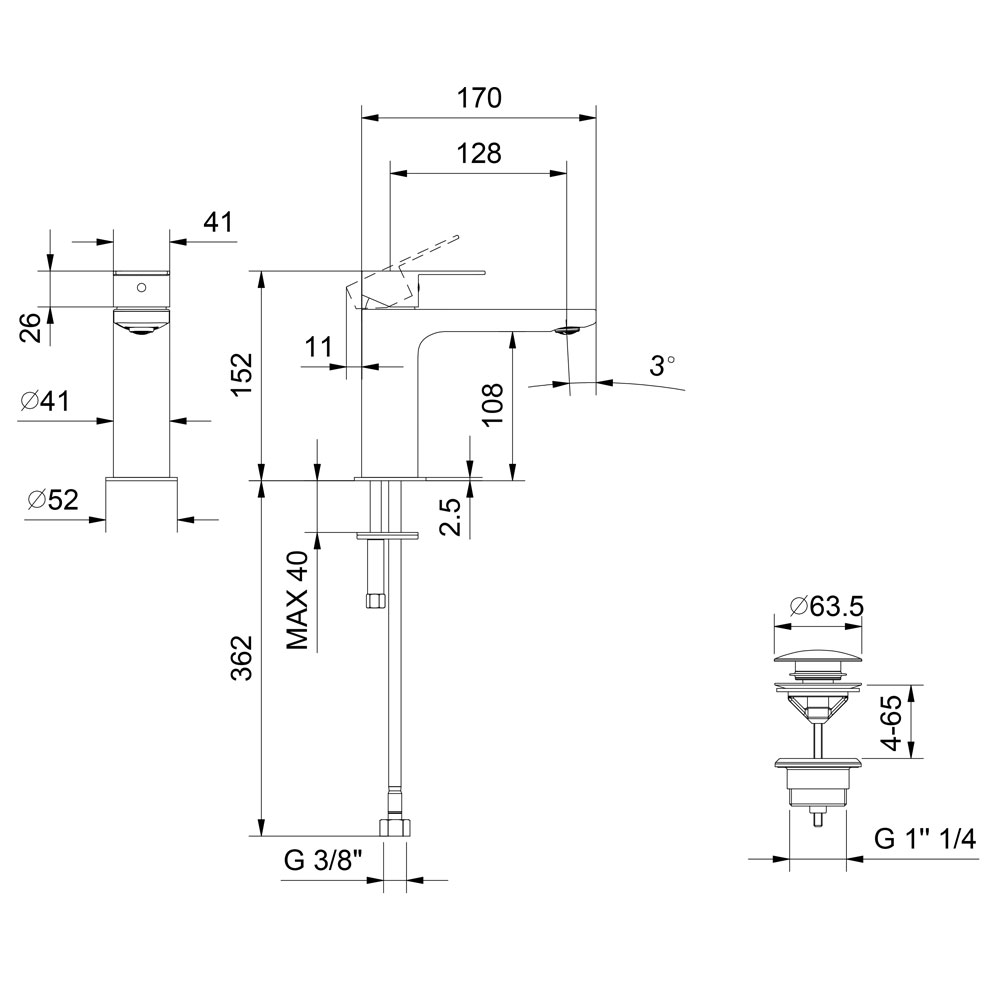 - Fori rubinetteria: 1