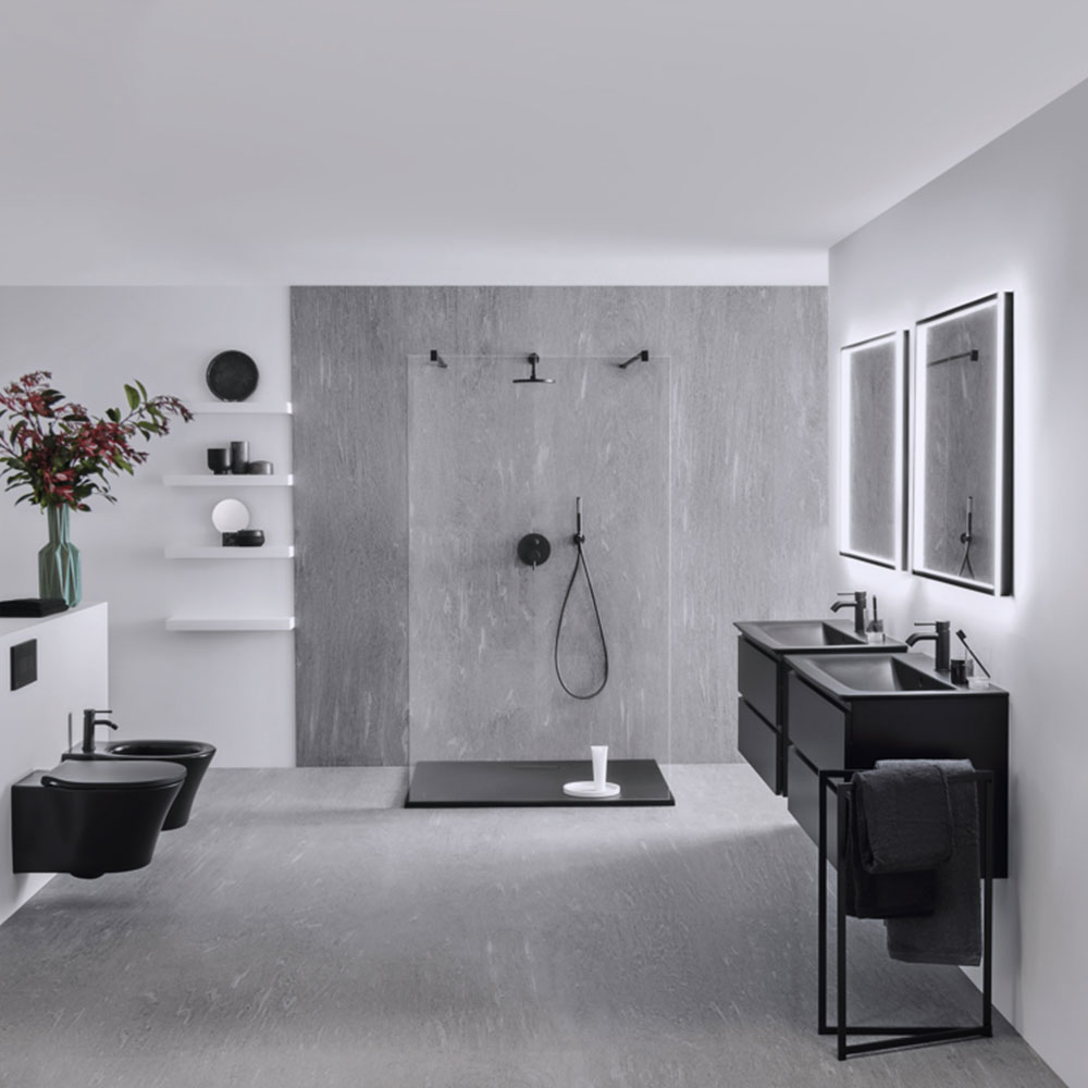Questo set da 5 pezzi racchiude tutto il necessario per un’area doccia completa, funzionale ed elegante, grazie alla sua esclusiva finitura Nero Seta opaca, sofisticata e resistente, ideale per chi desidera un tocco di carattere nel proprio arredo bagno.