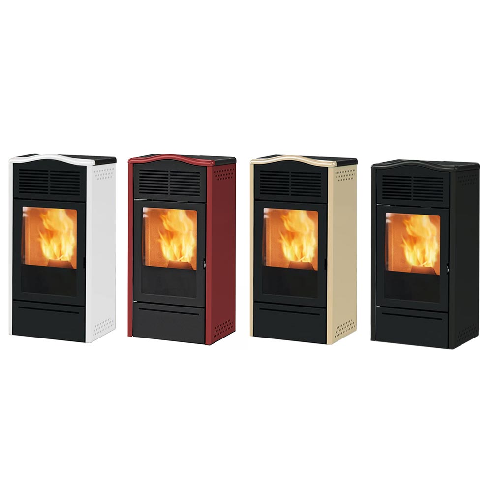 Il rivestimento in acciaio, disponibile in vari colori (beige, bordeaux, bianco opaco e grigio), si adatta a ogni stile di arredo, mentre il focolare in vermiculite assicura durata e una migliore diffusione del calore.