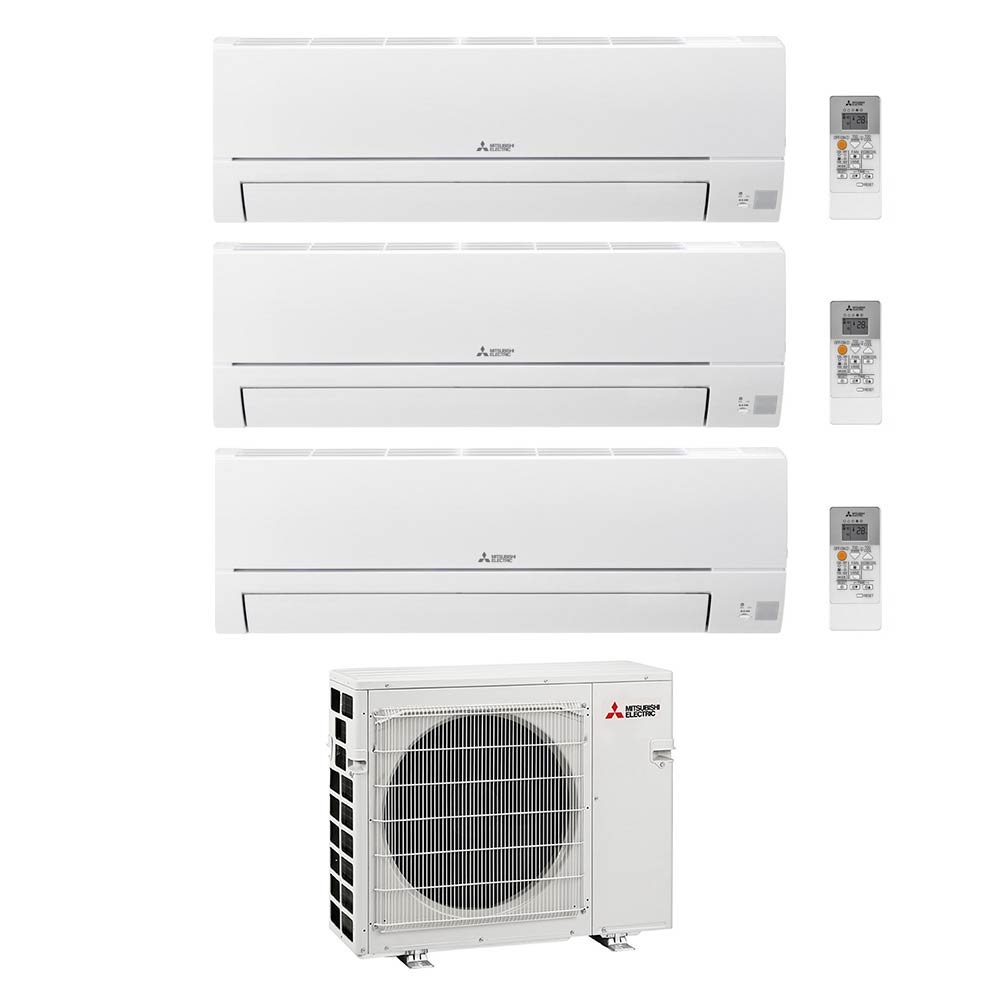 Climatizzatore Trial Split Mitsubishi Electric Inverter Linea SMART. Il set composto da n°3 unità interne MSZ-HR25VF da 9000 btu in classe energetica A++/A+, con gas ecologico R-32, Wi-Fi Optional e unità esterna MXZ-3HA50VF da 5 kW.
