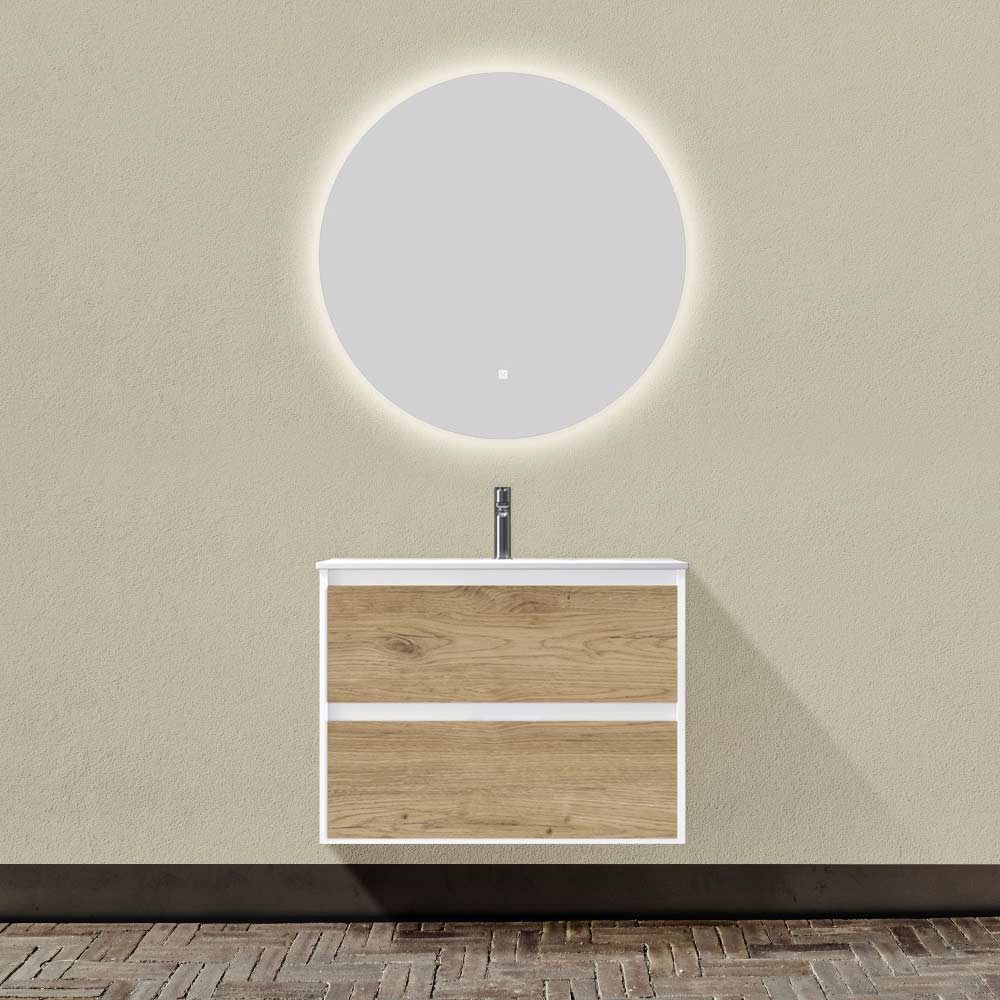 Con dimensioni di 80 cm in larghezza, 60 cm in altezza e 45 cm in profondità, questo mobile offre ampio spazio di archiviazione grazie ai suoi due cassetti scorrevoli con maniglia a gola, dotati di sistema di chiusura soft close per un utilizzo silenzioso e delicato.