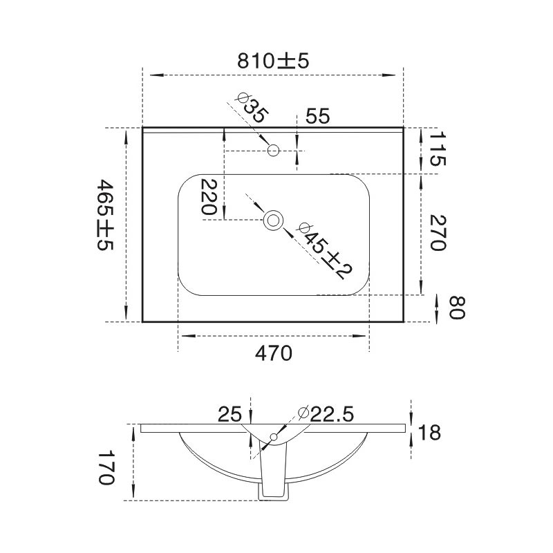 - Dimensioni lavabo: 81 x 46,5 x 17 cm