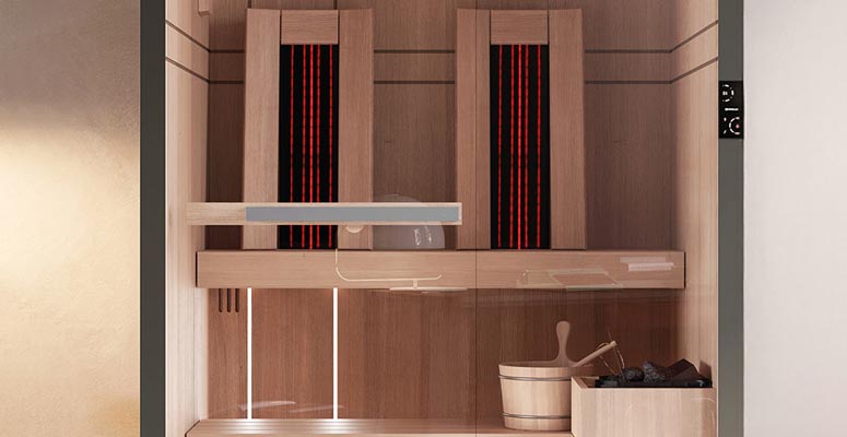 La sauna può essere arricchita, su richiesta, con tecnologia a infrarossi, che affianca al calore tradizionale un’irradiazione diretta e profonda. Questo sistema riscalda il corpo in modo graduale e mirato, favorendo il rilassamento muscolare e il benessere generale anche a temperature più basse.