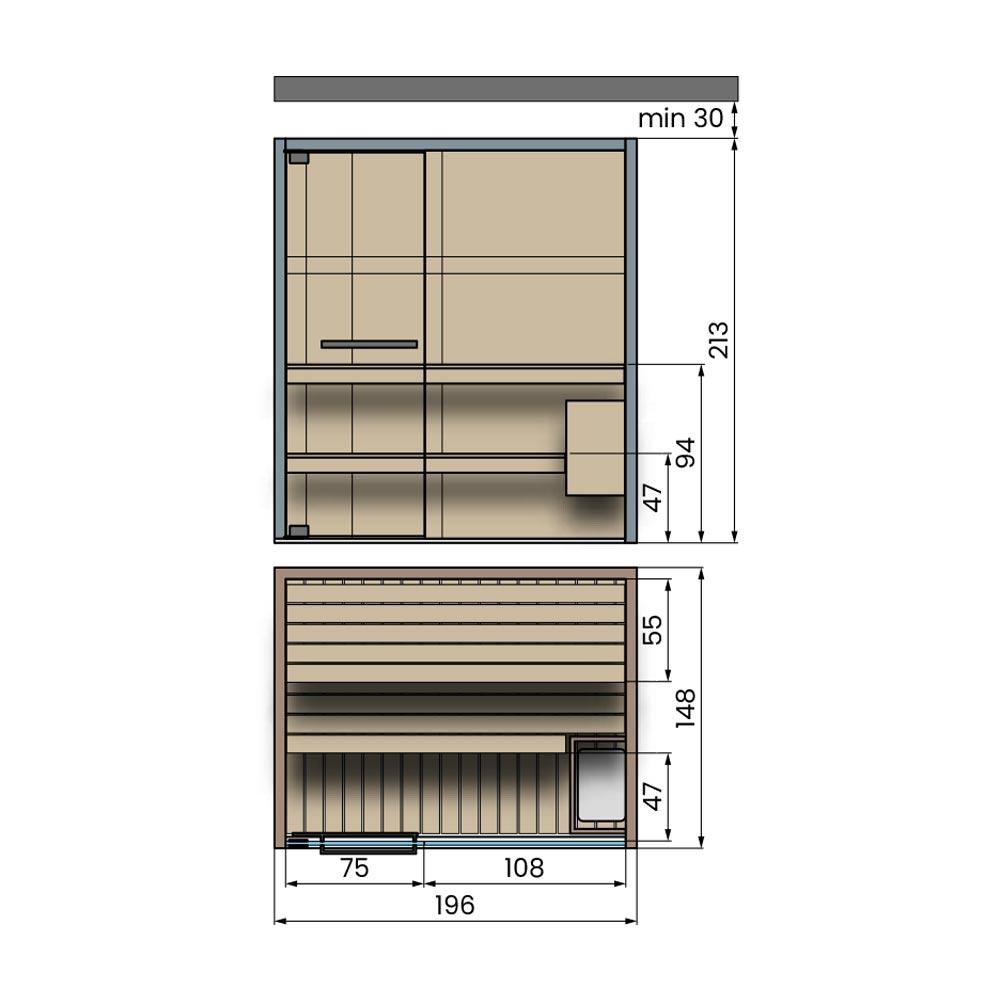Realizzata con legni pregiati come Abachi o Hemlock, la struttura interna è pensata per garantire un calore avvolgente e uniforme, piacevole al tatto e resistente nel tempo.