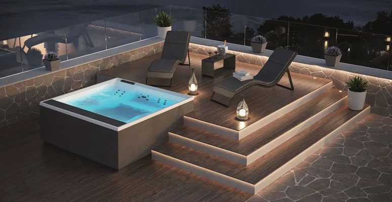 Sistema di riscaldamento integrato: Acqua sempre alla temperatura ideale, per vivere la tua esperienza wellness in ogni stagione, anche all’aperto.