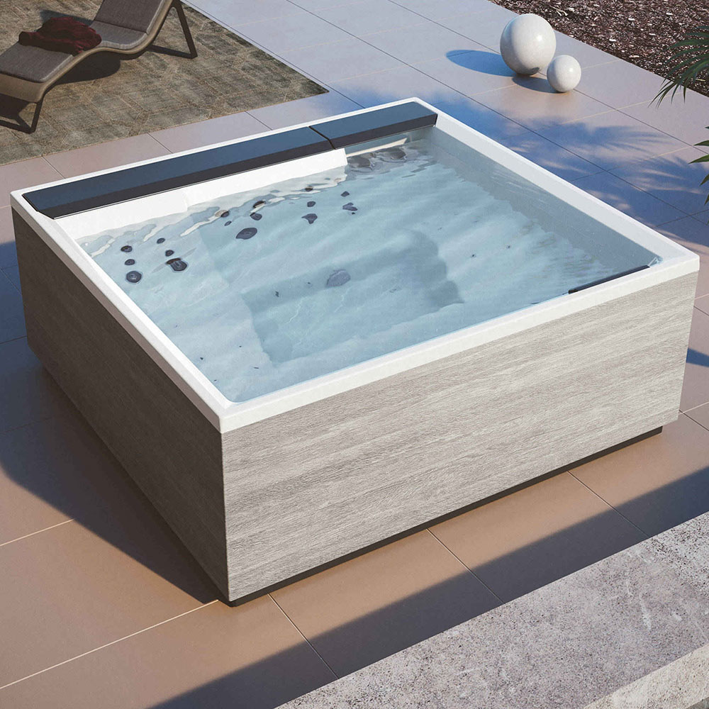 La minipiscina viene fornita con pannelli Natural Touch colore Oak Alpine. Contattaci per personalizzare il prodotto e scegliere la tua finitura.